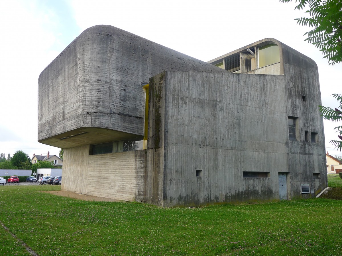 Un tombeau? Une tête de Snoopy? Un blockhaus de la dernière guerre? L'église Sainte-Bernadette-du-Banlay à Nevers de l'architecte Claude Parent et du philosophe Paul Virilio supporte depuis 50 ans le feu roulant des comparaisons désagréables. Des comparaisons pas toujours infondées, le bâtiment assumant son emprunt au vocabulaire militaire, notamment. A la fois bunker protecteur et crypte cavernicole inspirée de la Grotte de Massabielle à Lourdes, l'édifice construit en pleine guerre froide pousse loin le radicalisme dans l'architecture religieuse. Expression du brutalisme extrême ici adapté par le maître du plan incliné et le penseur de la vitesse, Sainte-Bernadette-du-Banlay veut ainsi expérimenter un nouvel espace dynamique où l'utilisation de l'oblique doit transformer notre rapport au monde. Renversant.
