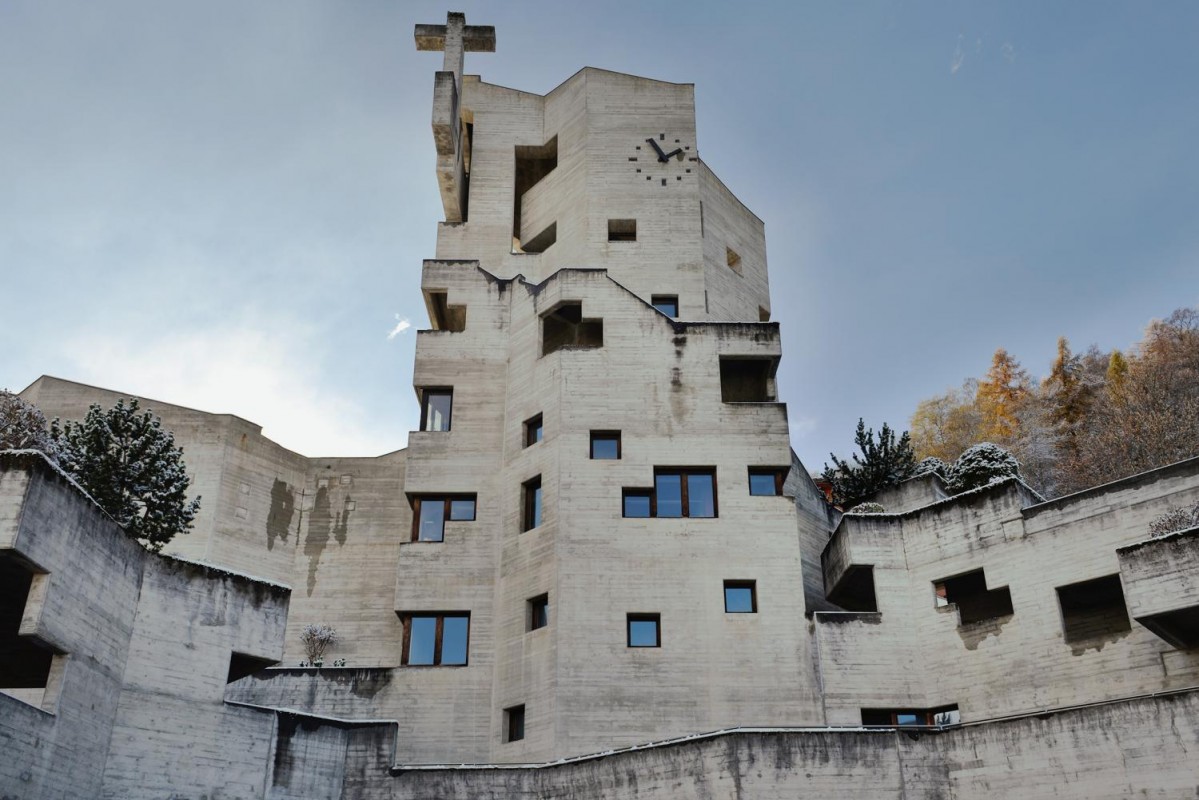 Encore une histoire de catastrophe. En 1947, un tremblement de terre endommage l'église Saint-Nicolas d'Hérémence. Abimée et devenue trop exigüe, elle est détruite vingt ans plus tard. En 1968, le Bâlois Walter Förderer qui envisage l'architecture en béton à la manière de la statuaire dessine les plans du nouveau bâtiment. Entre la sculpture habitée et le bloc granitique colossal, l'église consacrée en 1971, renvoie à la fois à la rudesse de la montagne et à la monumentalité du barrage de la Grande-Dixence voisin achevé quelques années plus tôt.
