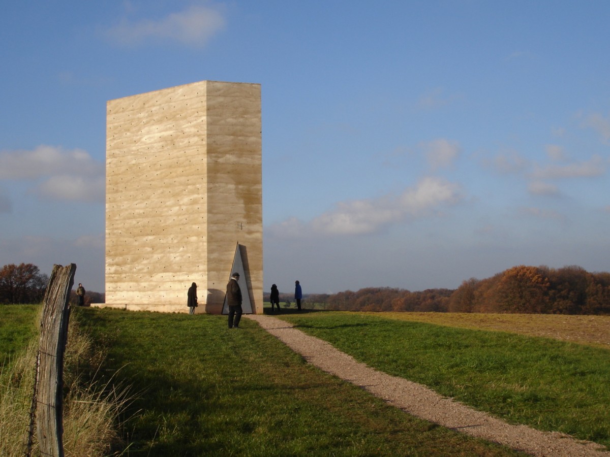 L'architecte grison aime les églises modestes. Il y a celle de Sumvitg, en Engadine, recouverte d'une carapace de tavaillons de mélèze qui lui donne cet aspect chou de tatou des montagnes. Et la très spectaculaire chapelle Bruder Klaus, édifice privé commandité en 2007 par un riche fermier de Westphalie du Nord pour remercier Saint-Nicolas-de-Flue de sa réussite en affaire. Un ex-voto géant à la rectangularité sévère, éclairé par 350 billes de verre et dont le coffrage, constitué de 112 troncs de pins de 12 mètres de haut, a été brûlé une fois le béton pris. Les traces arrondies et noircies des supports naturels et surtout l'odeur du bois carbonisé parfume l'atmosphère d'un air de fumoir mystique.