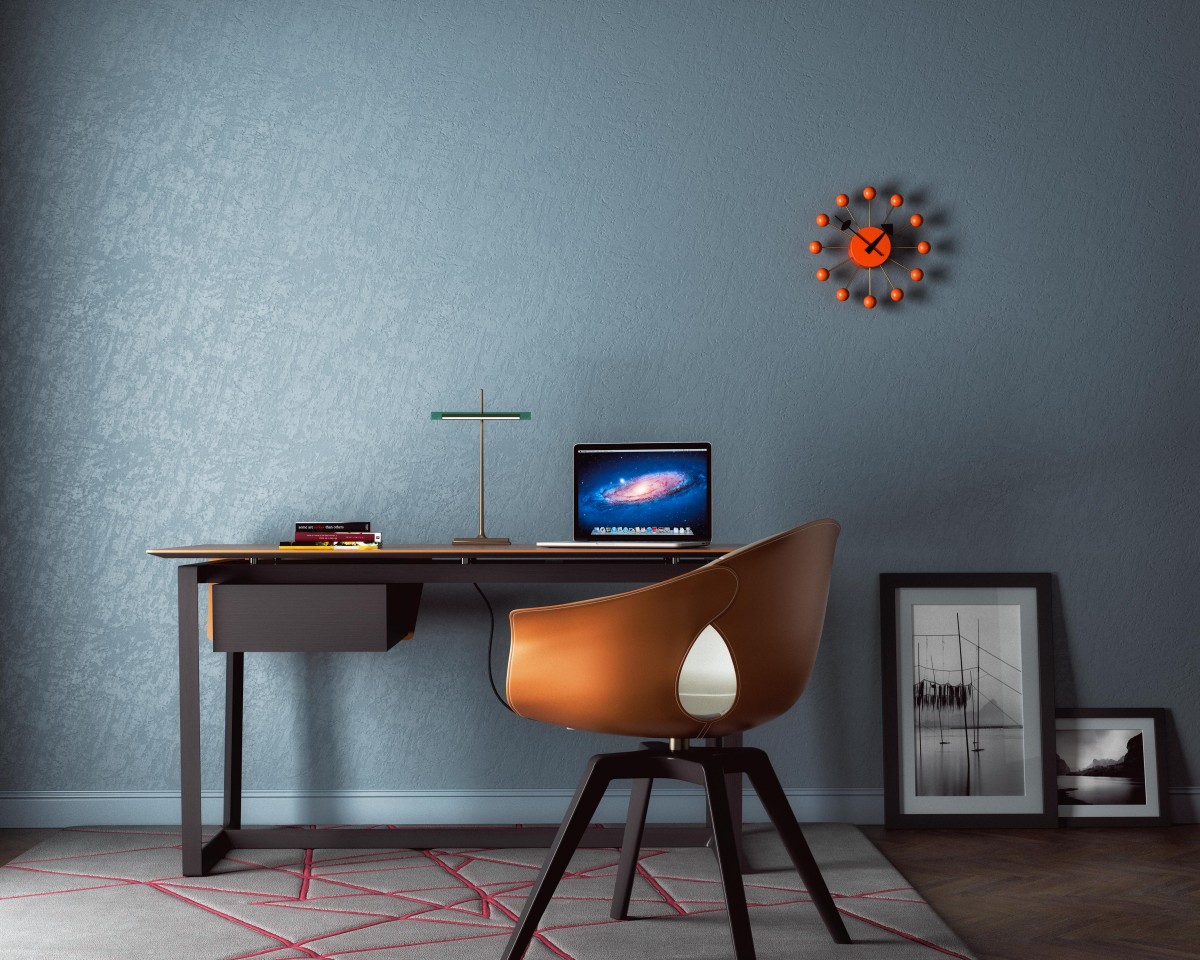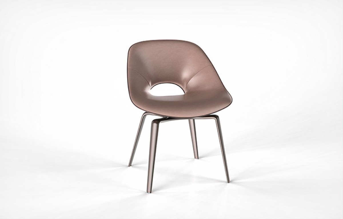 Tout commence par une idée. De père en fils, de connaissance en développement, de technique en réalisation. Lorenzo Lazzeroni est, comme on dit en italien figlio d’arte. Son père, Roberto Lazzeroni, dessine depuis une dizaine d’années pour Poltrona Frau, maison de meubles fondée en 1912 par Renzo Frau, dont le siège se situe dans la région des Marches en Italie centrale. Lorenzo Lazzeroni est actif depuis toujours auprès de son père. Pour lui, l’un des objets les plus emblématiques du fabricant de mobilier se trouve être la chaise Ginger. Il l’associe au bureau Fred, oui, tous les objets portent des prénoms. Au sein du bureau Lazzeroni studio, Lorenzo fait du rendering. Comprenez en français «rendu photoréaliste», le processus en coulisses qui consiste à monter un visuel pour voir ce que les créations donneraient en vrai. C’est un peu simplifié, mais fondamentalement, le photoréalisme demande des compétences artistiques de mise en scène et de composition tridimentionnelle.