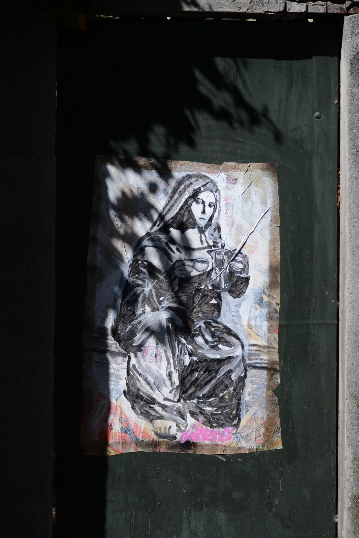 Les rues de Naples ont donc offert à Sapiens un spectacle qui l’a réconcilié avec l’idée que l’art sur les murs n’était pas que du vandalisme. Ernest Pignon-Ernest et Zilda l’ont marqué au détour d’une ruelle escarpée, sale et craquelée sur les flancs du Vomero et l’ont ému. « Ce n’était pas l’œuvre qui parlait, mais la rue qui acquérait un sens. Il ne s’agissait plus de créer le message et de le poser n’importe où, mais de se faire le porte-parole de la cité, en sublimant ses artères. » C’est ce jour-là que Sapiens a intégré le message dans sa beauté, son romantisme et proche des icônes sacrées.