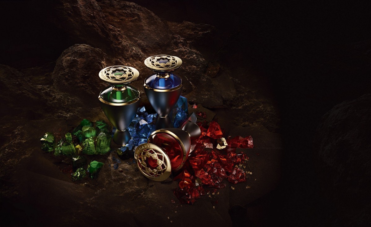 Au début, on m’a confié une pierre pour chaque fragrance : une émeraude, un saphir, un rubis. On m’a dit de les interpréter telles que je les voyais. À Rome, au siège de Bulgari, nous avons réalisé un travail sur le symbole de ces pierres. J’ai transposé avec mon interprétation ce que je ressentais et quand j’ai vu les pierres, c’est sorti. C’était intense. La difficulté était de trouver la bonne direction pour chaque pierre, le travail a été énorme parce que chacune pouvait se comprendre de mille façons. Nous avons mené de front un travail impressionnant avec l’équipe de Bulgari également à Neuchâtel.