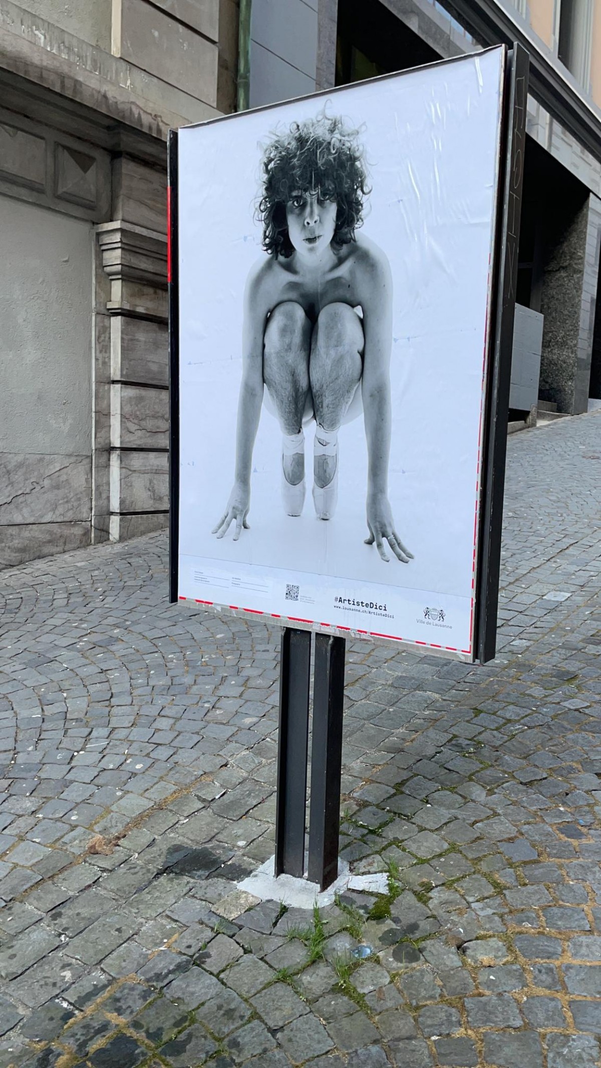 La situation due à la pandémie a fortement affaibli le domaine de la culture. Comme le rappelait un article du 24 heures le 29 mars dernier:« En février, la task force Culture romande dévoilait que 43% des acteurs et actrices du milieu culturel envisageaient d’abandonner leur métier pour des raisons financières.» C’est pourquoi les artistes ont reçu la somme de 1500 francs en guise de soutien et pour compenser les annulations de la plupart des manifestations artistiques. «L’événement avait déjà eu lieu à Sion et à Genève et je suis heureuse d’avoir été sélectionnée», explique Noura Gauper, photographe indépendante qui a présenté une splendide jeune femme aux jambes totalement naturelles, on n’entend : pas épilée. «Il fallait que l’image proposée aille dans la continuité des travaux et des thèmes d’intérêt de l’artiste, c’est pourquoi, après avoir sorti le livre Trans*, (Éd. Till Schaap), j’ai choisi de mettre en avant le thème de la non-binarité, du no gender. Ce projet-là, le choix de cette image s’est fait par rapport à la ville de Lausanne qui est non seulement la capitale olympique mais aussi un haut lieu de danse classique, par son rapport avec le ballet Béjart. Cette image de femme en ballerines parle des nouvelles identités de genre, du fait que la pilosité naturelle est apparente au premier coup d’œil et que c'est bien comme ça.»