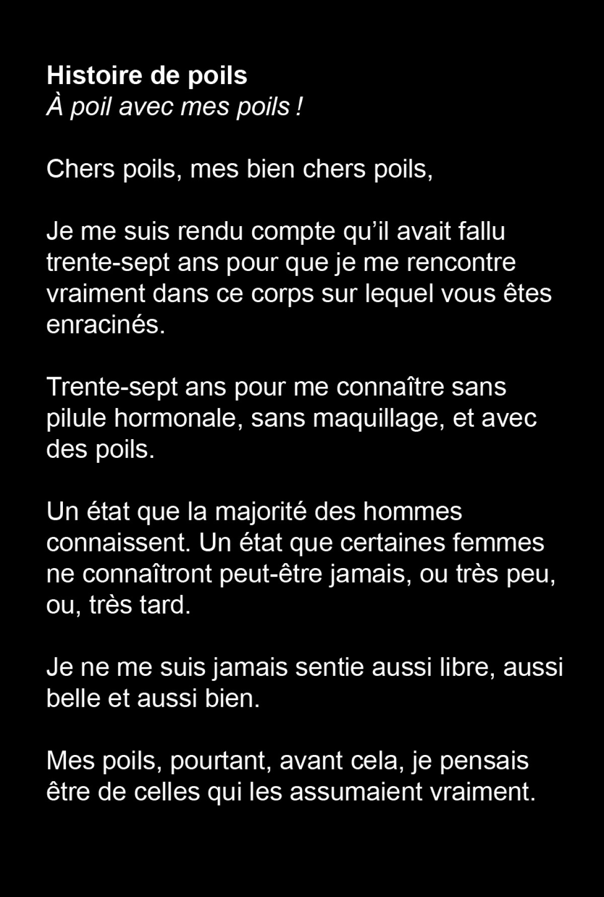 En jouant sur ces détails recherchés, alors que l’image est épurée, la photographe fait vibrer le regard dans la souffrance, comme sur des talons aiguilles, et l’élévation, avec une femme à la coupe ébouriffée, sauvage, un peu comme Marilyn Monroe. Si ce côté sexy traduit l’animalité de la femme, il reste que l’homme finit souvent par réprimander cette attitude, jugeant le fait de ne pas s’épiler comme antiféminin.